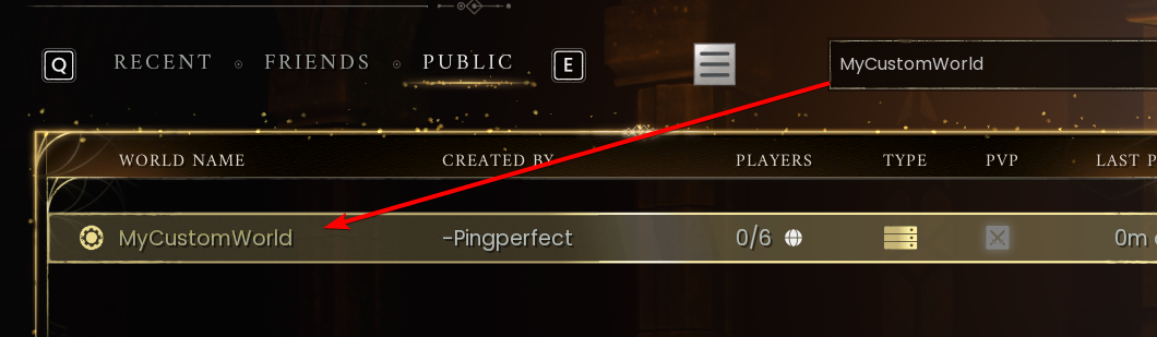 - You can now start your server, and if you search in game for your world name it will appear: