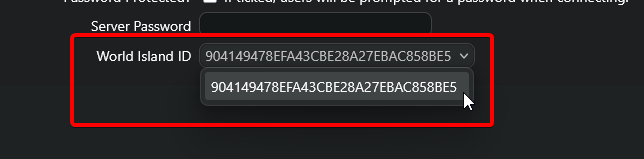 Using the Config Editor you can modify the World Island ID setting to select the ID of the save data you have just uploaded like so (if you have multiple save games you will see them all listed):